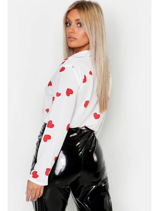 Chemise tissée imprimée coeurs