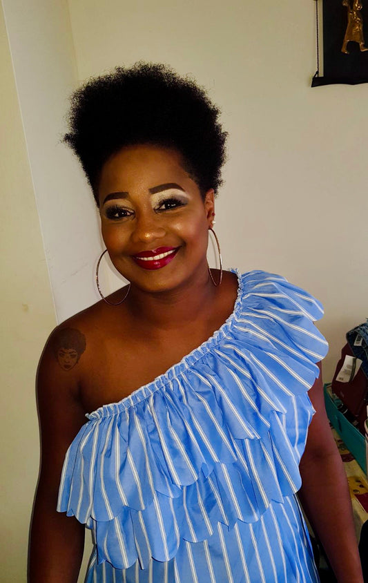 Combinaison rayée épaule asymétrique à volants