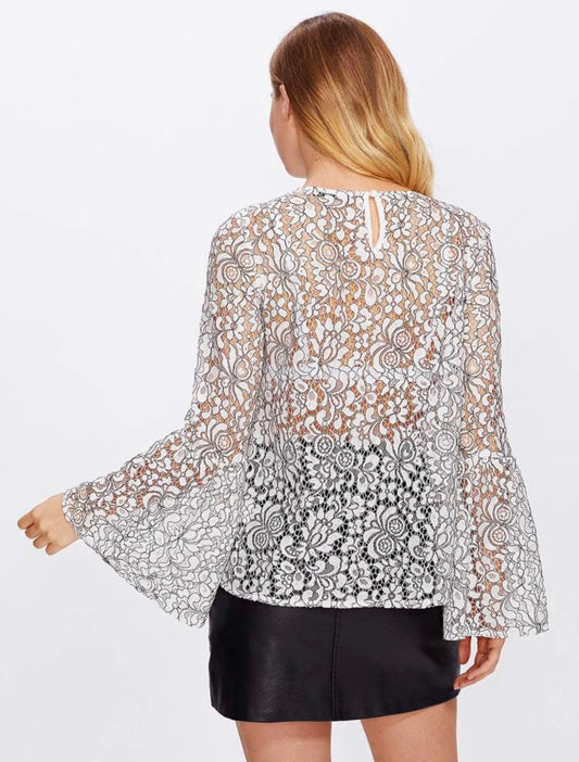 Top en dentelle avec manches flûte