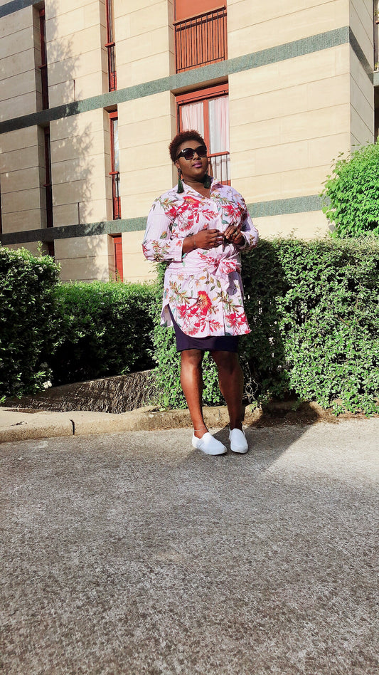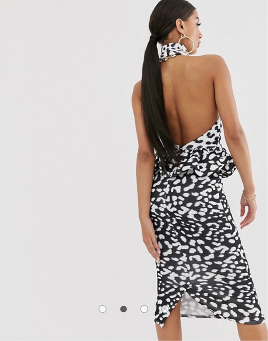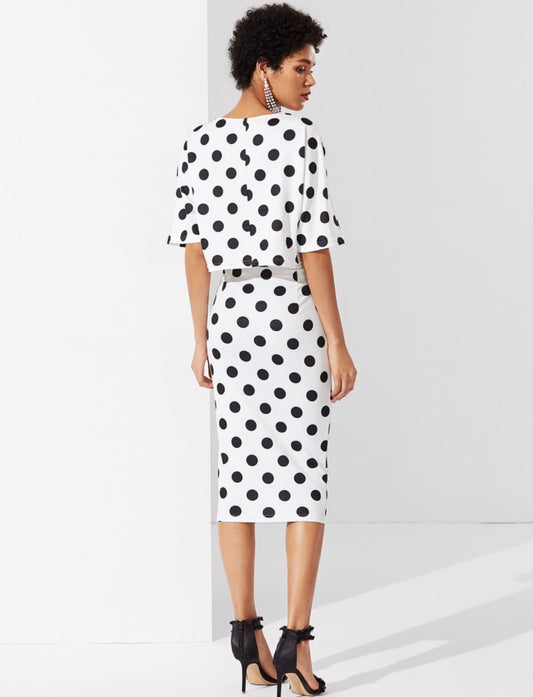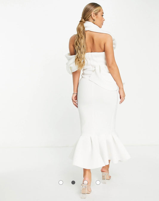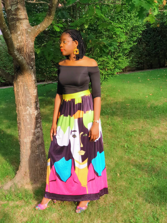 Ensemble top unicolore à épaules dénudées & jupe imprimée