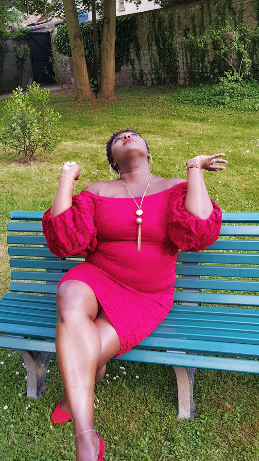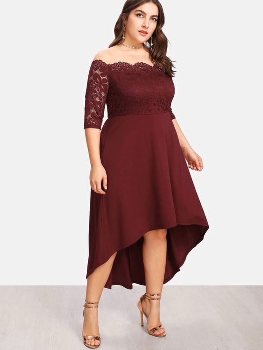 Robe mi-longue épaules dénudées en dentelle