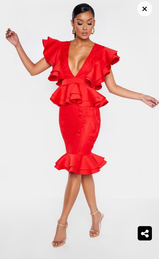 Robe mi-longue décolletée et volantée