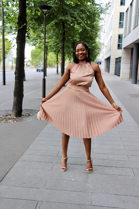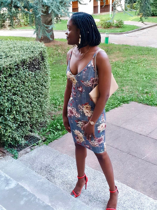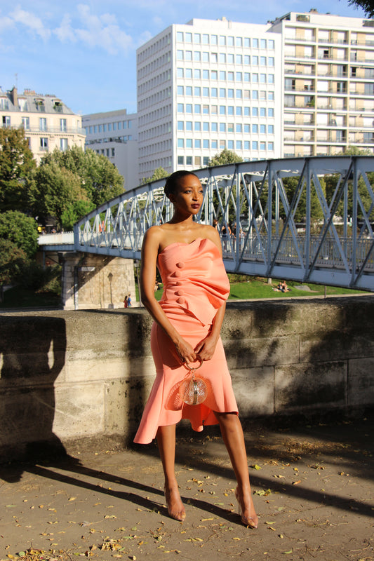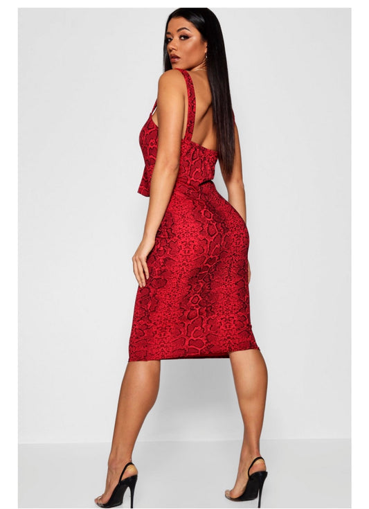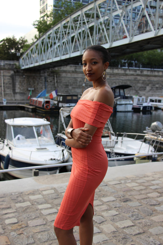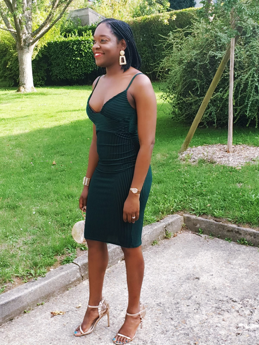 Robe midi cache-coeur épaules dénudées motif chaînes