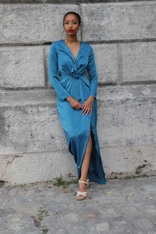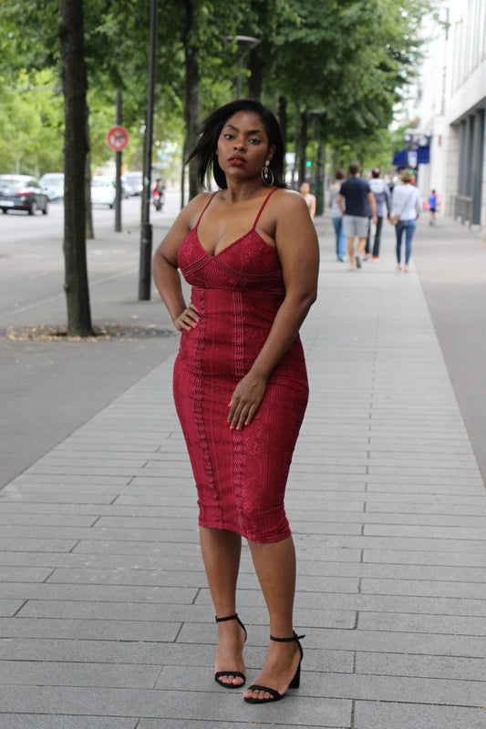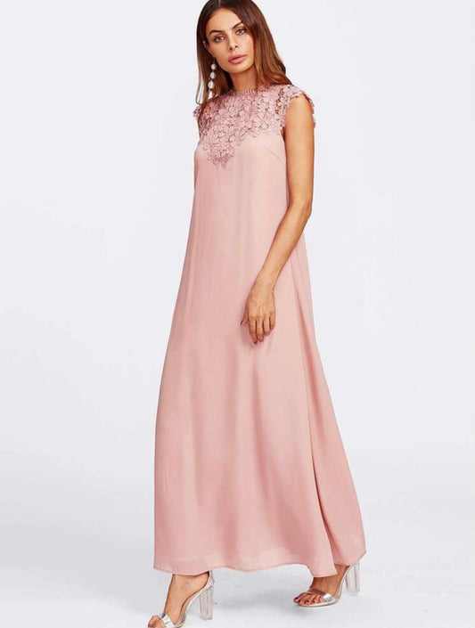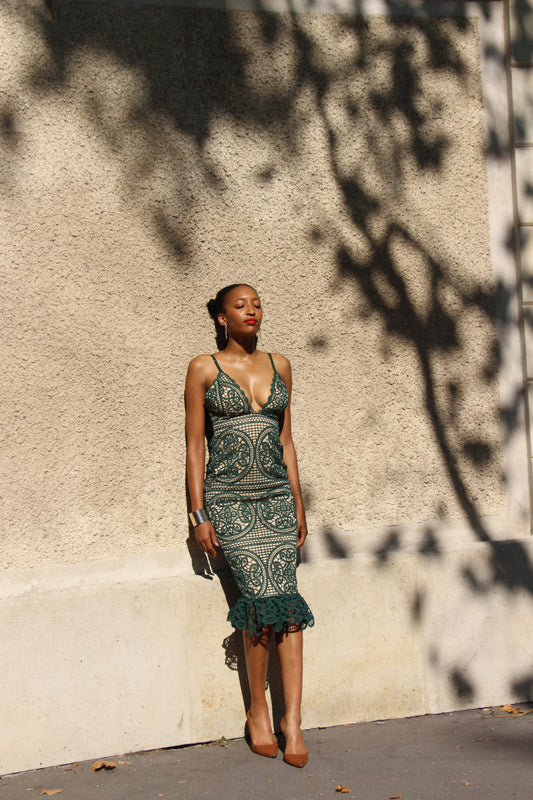 Robe mi-longue à ourlet volanté dentelle et bretelles fines