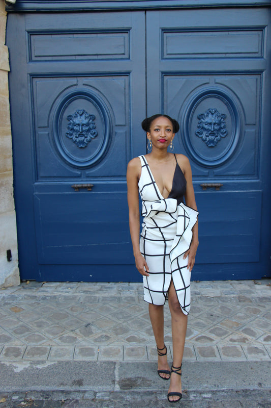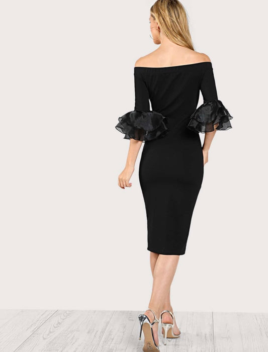 Robe en dentelle effet 3D avec manches à volants en néoprène