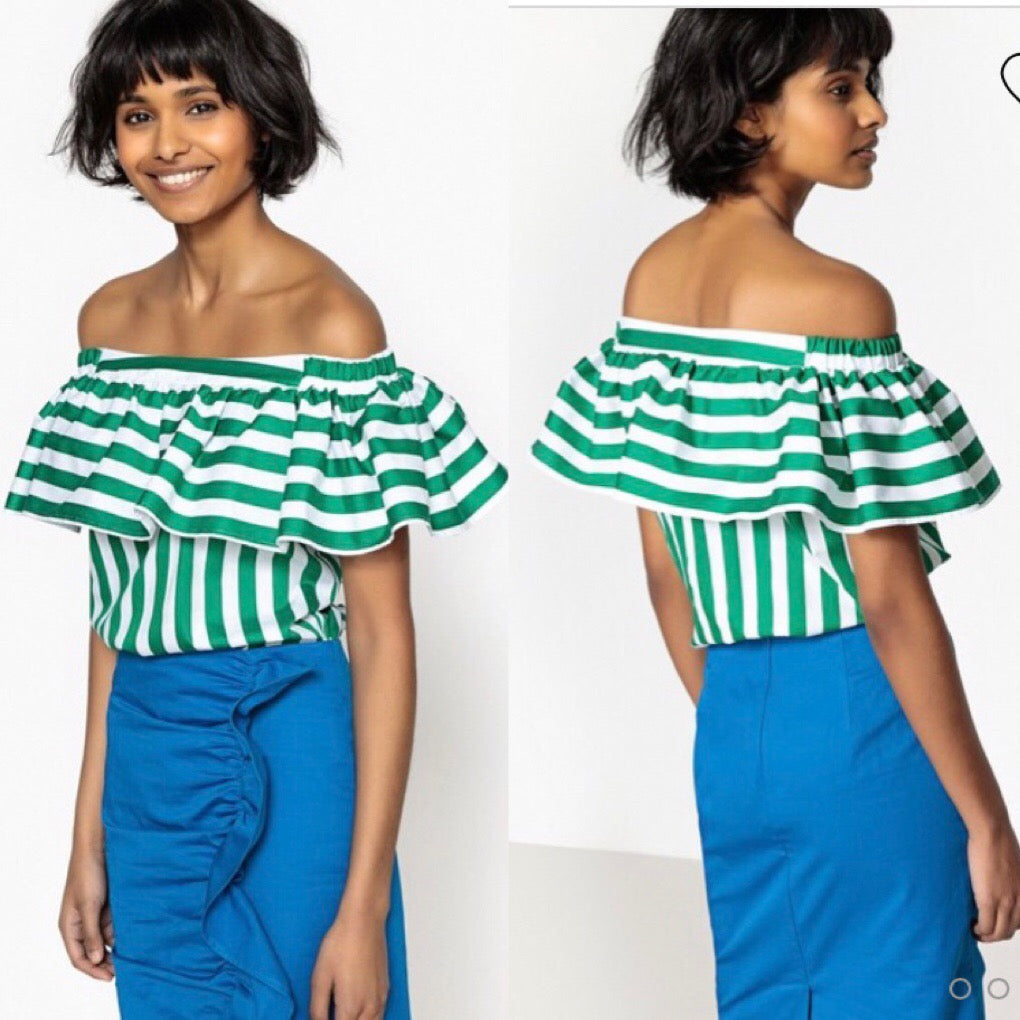 Couleur: vert,blanc, composition: 95%coton,5%polyester; détails: rayé, épaules dénudées