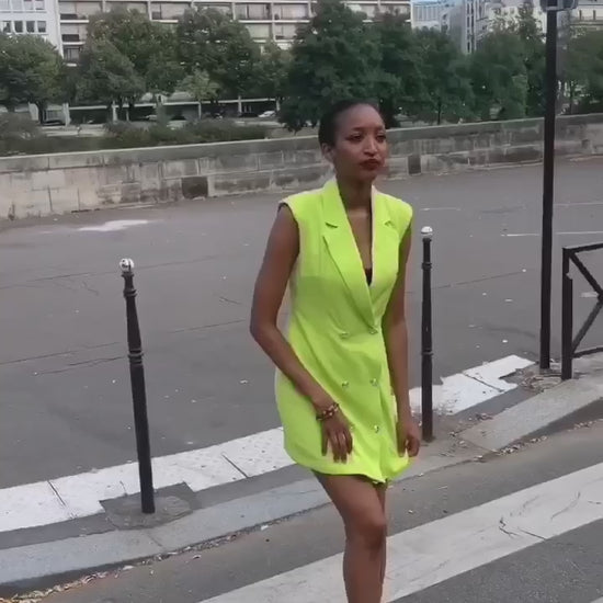 Robe blazer moulante sans manches à bouton